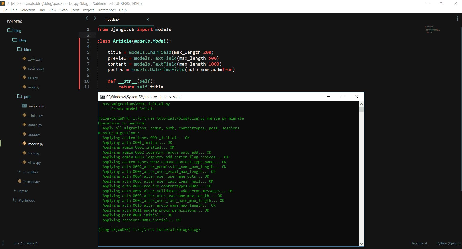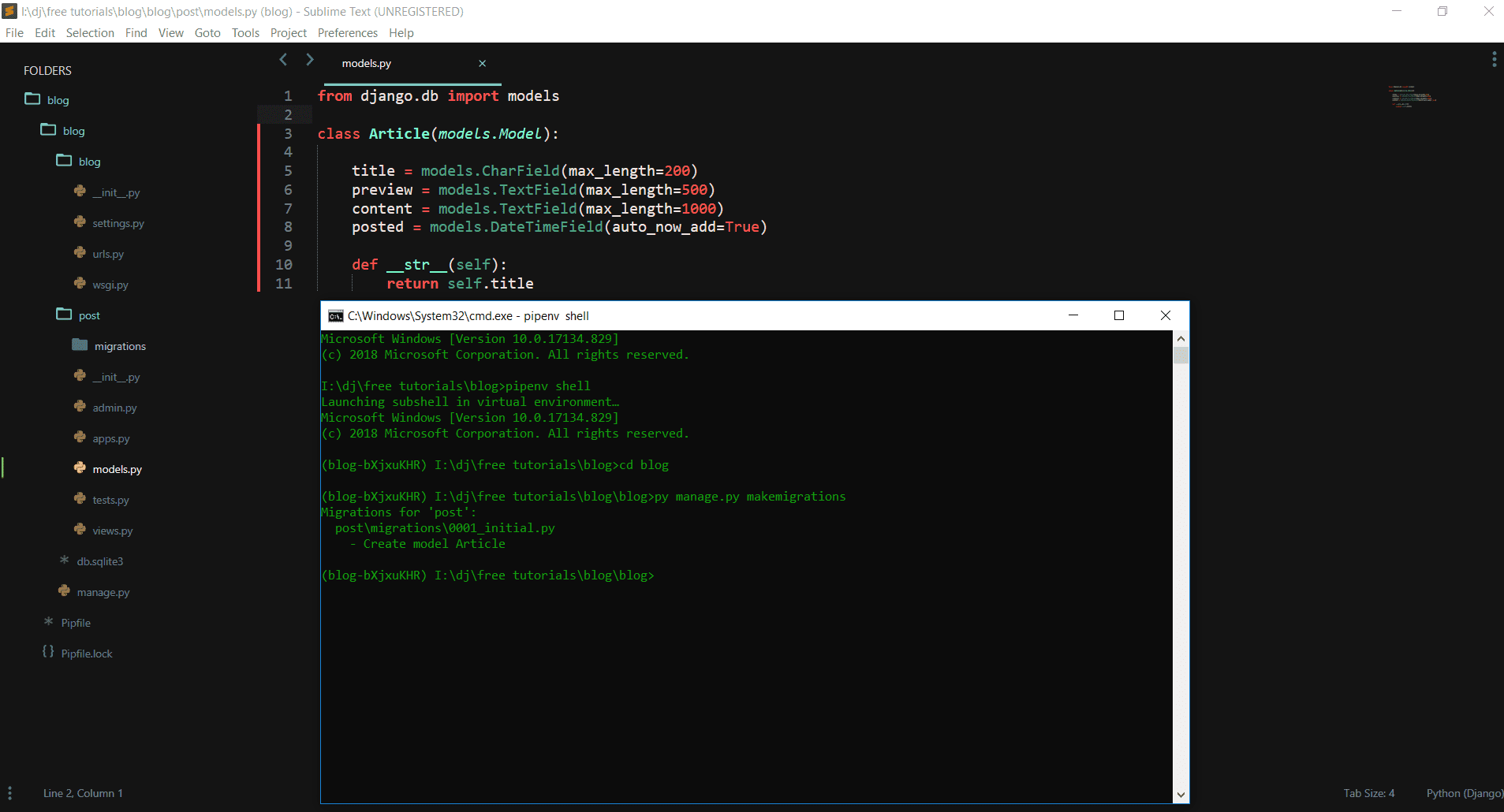 Now we need to create our Model for our posts. So to do that just open the models.py file in the editor and type these following commands.