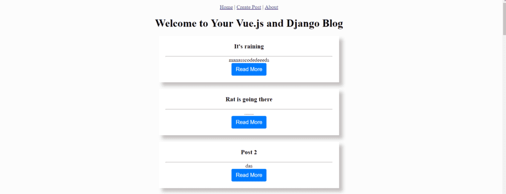 When both the server successfully run, the vue server will running on localhost:8000. Open the url on you browser to see all the post. But unfortunately you will see something look like this.
