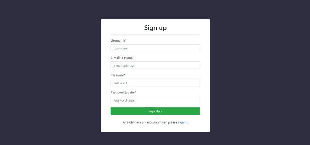 <h2>Sign up</h2>